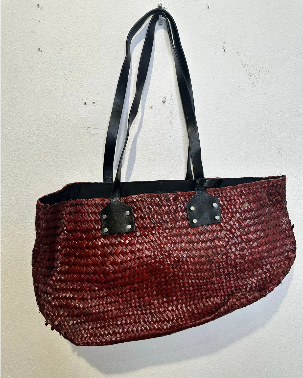Features: Brand: ALLSAINTS Type: Bag Size: One Size Color: Red Material: Straw No Closure Open Zi... Show more