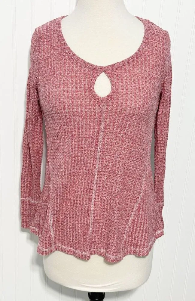 Almost Famous Knit Scoop Neck Long Sleeve Top Heather Reddish Pink Size Medium Size: Medium Con... Show more