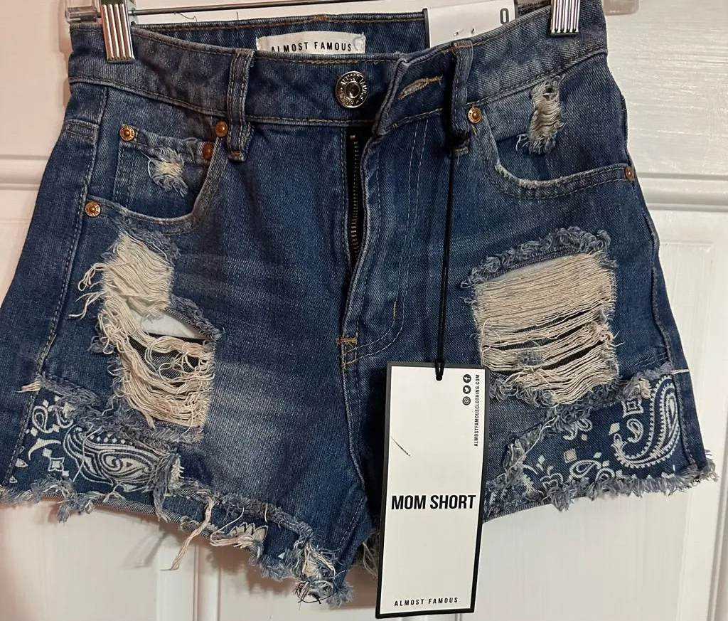 Get ready to rock the summer with these Almost Famous Mom Shorts in size 0! These mid-rise, blue den... Show more