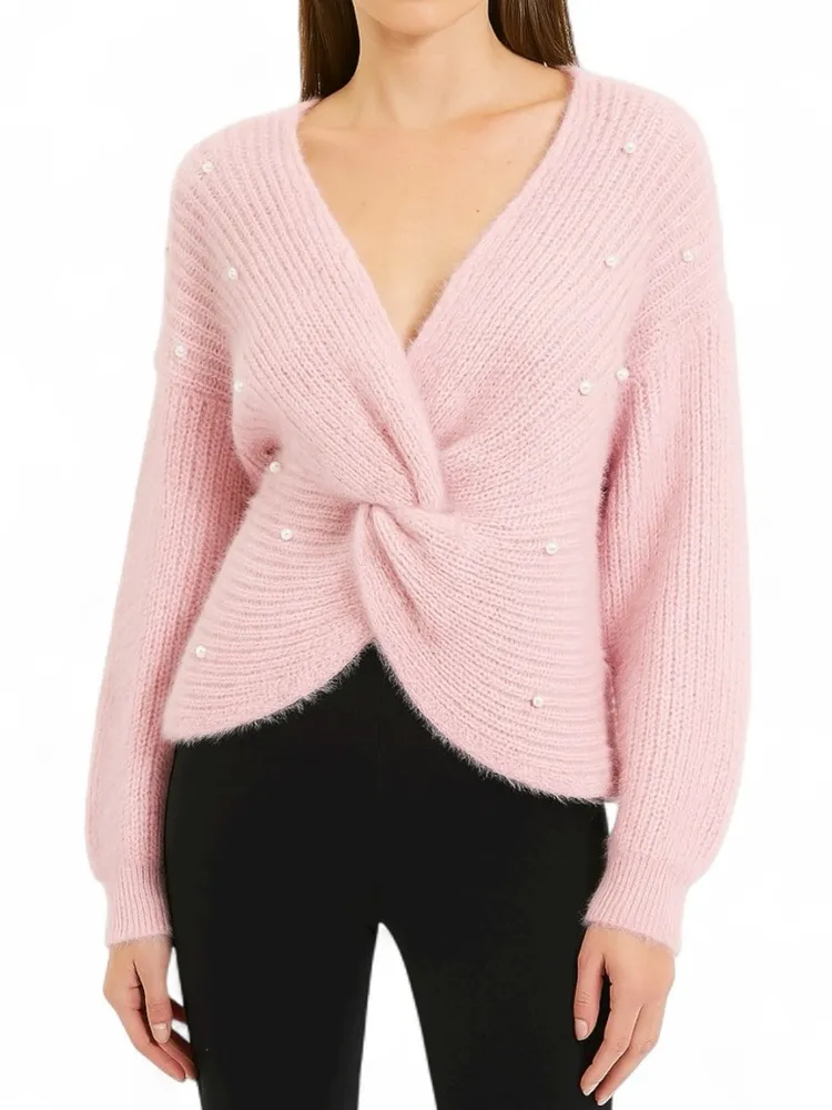Size: Large P2P: 24” Length: 27” Stay cozy and stylish with this elegant pink knitted sweater. Feat... Show more