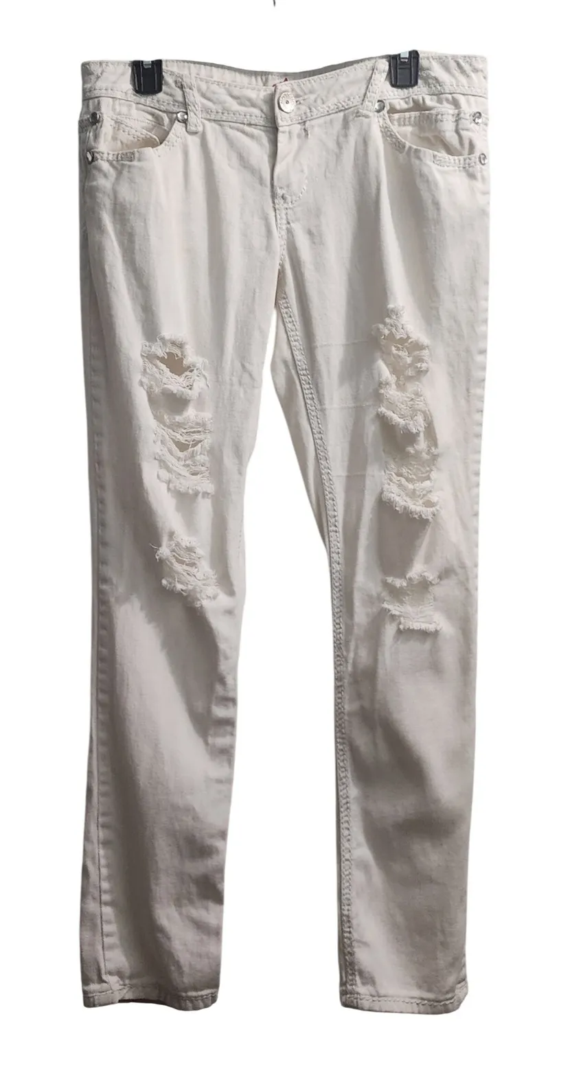 Keywords: Almost Famous jeans, white jeans, distressed jeans, ripped jeans, slim fit jeans, women's jeans, denim jeans, casual jeans, size 11 jeans, fashion jeans, trendy jeans, designer jeans