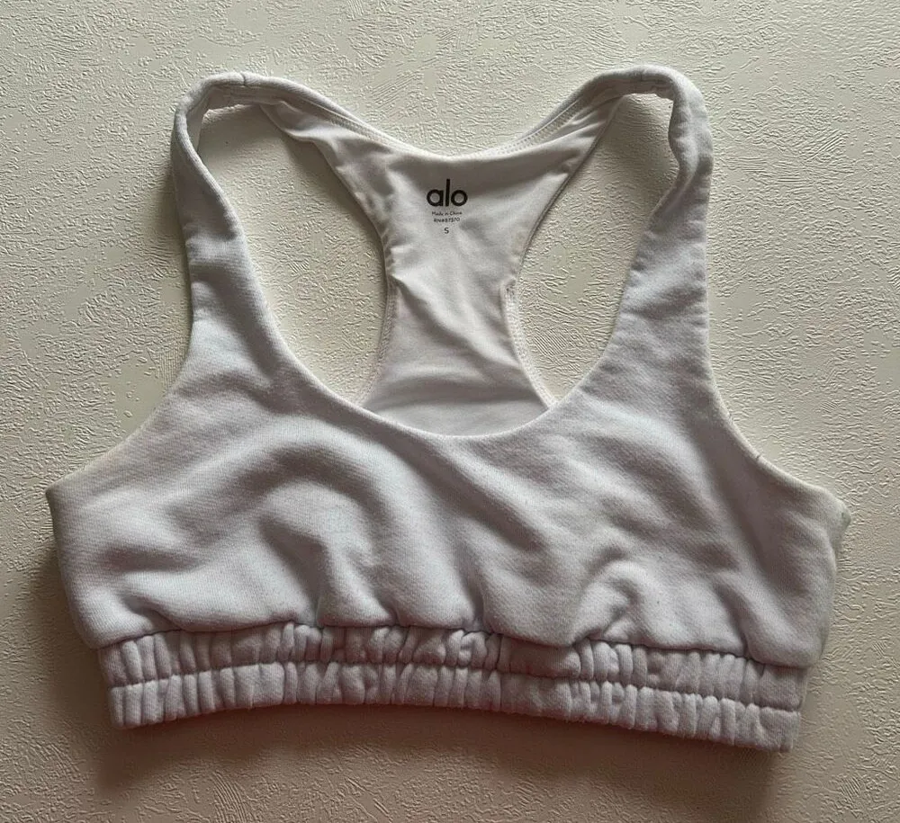 Alo Yoga white ribbed racerback sports bra in size Small. Features soft, stretchy ribbed fabric and... Show more