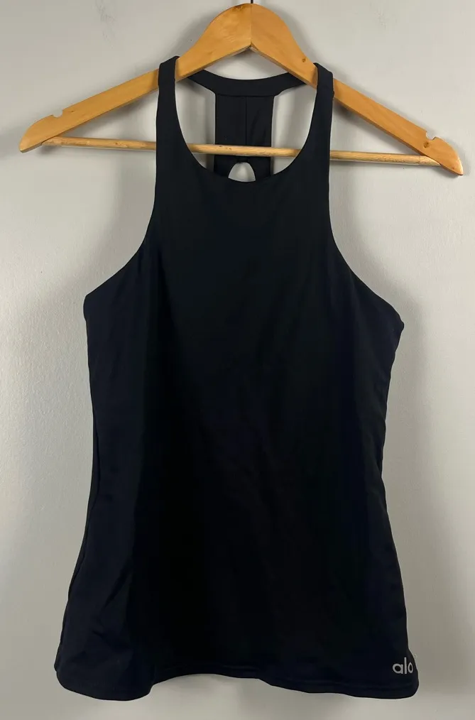 Alo Yoga black fitted cutout Racerback tank top size S READ Good condition, no size tag Shelf bra F... Show more