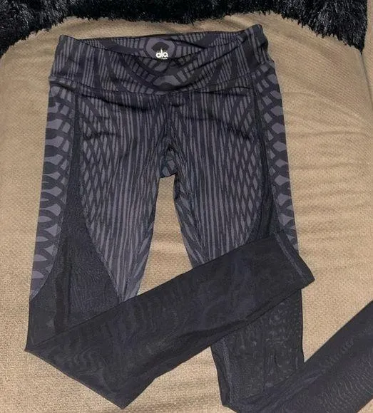 Alo Yoga Black Grey Striped Mesh Leg Low Rise Leggings Women’s - L Size L - $40 - From Jennifer