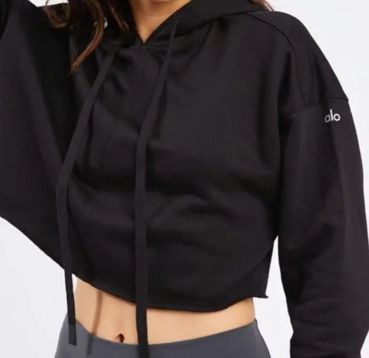 Alo Yoga cropped raw edge sweatshirt size medium. Excellent condition. Still has the cleaners tag on... Show more