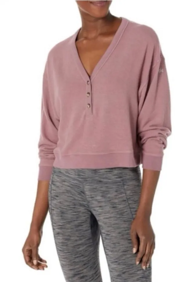 Chic mauve V-neck top from ALO Yoga. Soft and comfortable fabric. No stains no holes. Smoke free h... Show more