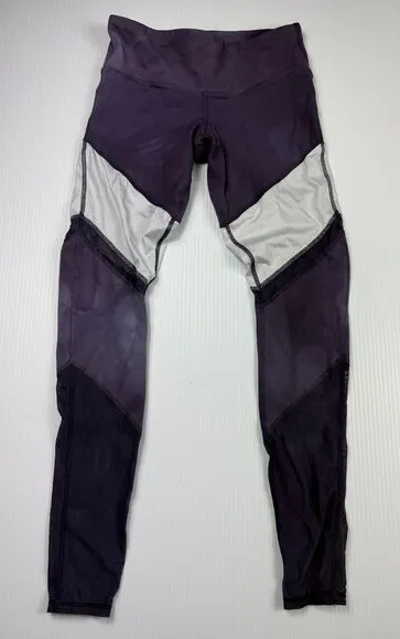 Sleek athletic leggings in deep purple with contrasting light gray side panels. Features a high-wais... Show more