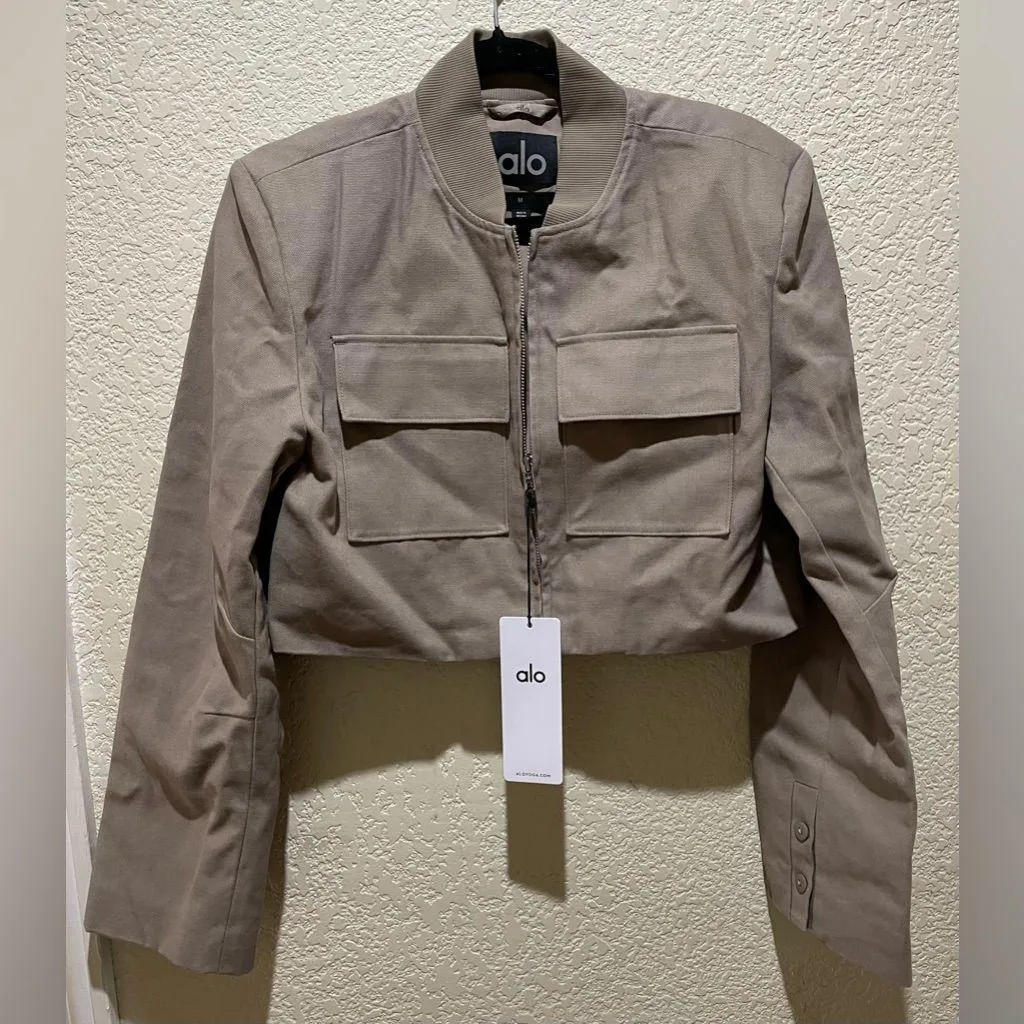 (Stock Photos for Fit Reference Only) Stylish beige bomber jacket Features a cropped fit and front... Show more