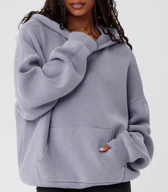 No size tag, good pre-owned condition Pit to Pit: approx. 27” Length: approx. 30.5” Sleeve Length: approx. 22” Softest. Hoodie. Ever! Made from ultra-cozy knitted cotton yarn, the Scholar Hooded Sweater is a 10/10. It’s warming yet breathable with classic features like a kangaroo front pocket for stashing small essentials and a ribbed hem and cuffs for a snug fit. A built-in hood and dropped shoulders complete the cozy, off-duty vibe. Pair it with any super-soft sweats in your closet and wear on repeat. * Ultra-cozy knitted cotton yarn * Built-in hood & kangaroo front pocket * Unisex style. Made from heavyweight knit for an oversized fit with a banded hem—size down once or twice if you prefer a closer fit. Good