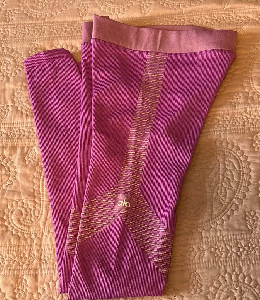 Elevate your workout wardrobe with ALO Yoga's vibrant pink and yellow leggings, designed for both st... Show more