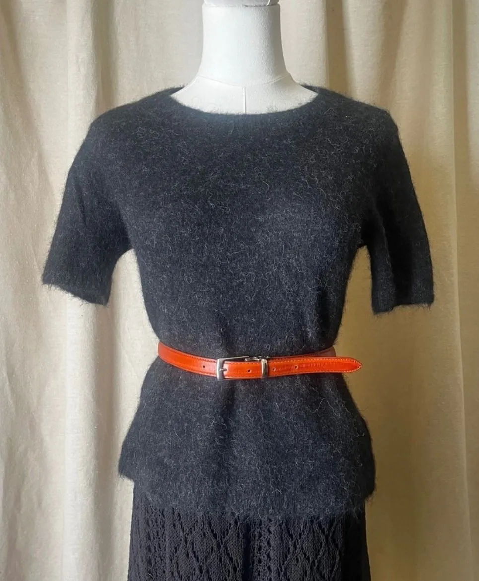 Belt is for styling only. It is not included Soft minimalist Everlane short sleeve sweater in a ch... Show more