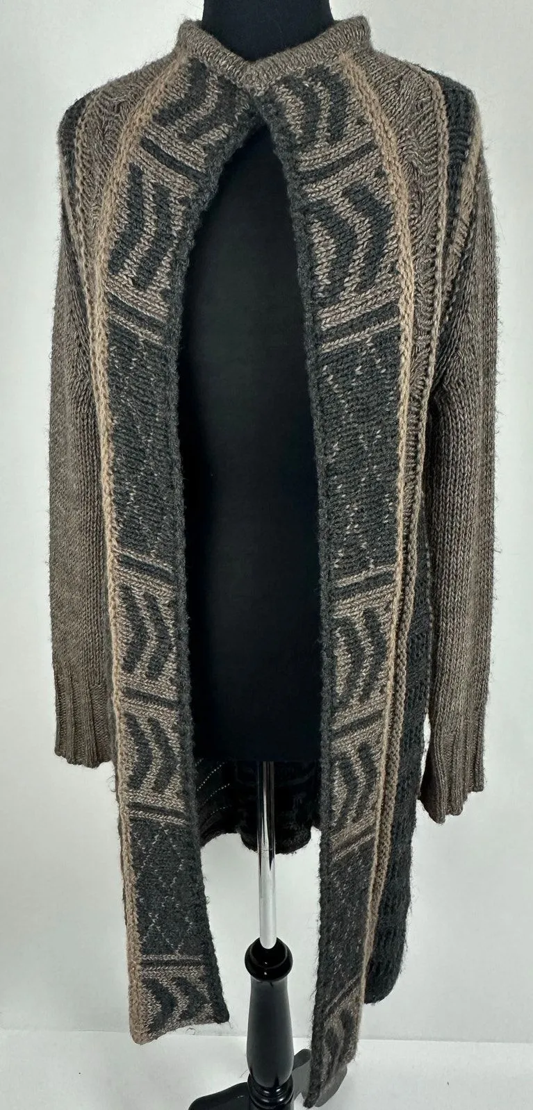 Gottardi Long Cardigan Sweater Size: Large Features: 60% Acrylic 14% Alpaca 12% Wool 8% Viscose 3% Nylon 3%Mohair Open-Front Long Length Excellent condition. No rips, holes, stains, or pulls. Measurements: Armpit to armpit: 19 inches Length: 38 inches Style Tags: Western, Mohair, Alpaca, Wool, Duster, Long Cardigan, Chunky Knit, Crochet, Neutral, Boho, Bohemian, Southwestern, Tribal, Indigenous,