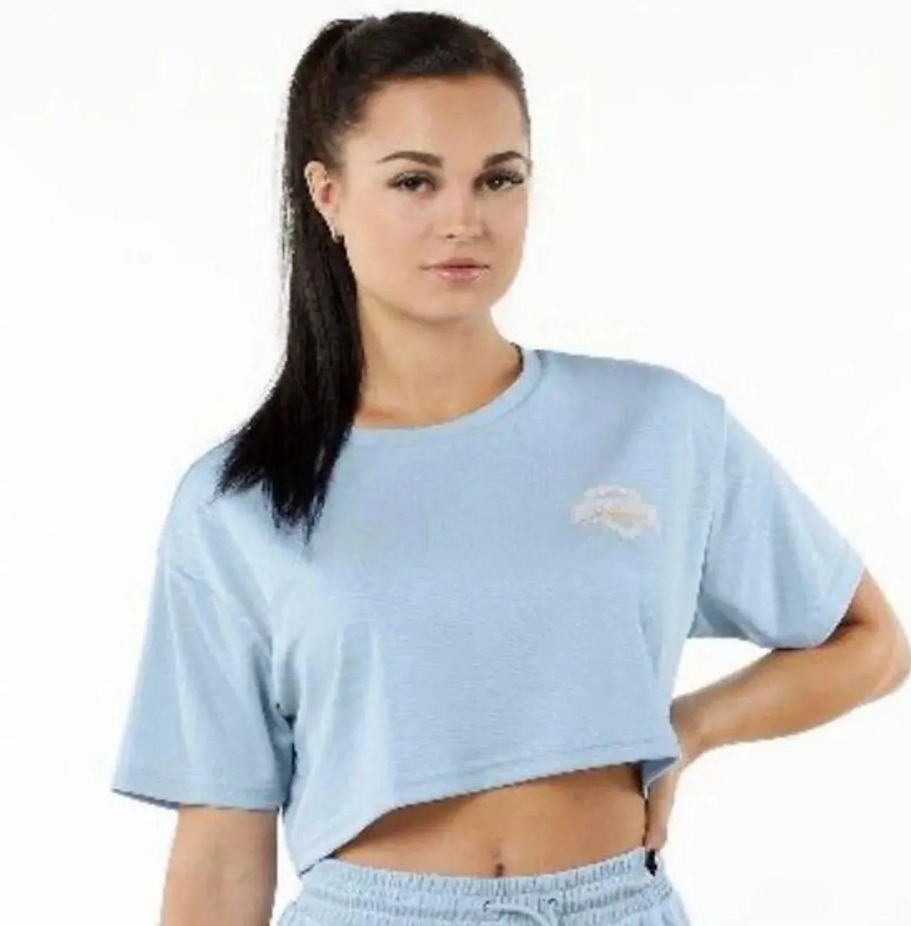 Alphalete Women's Varsity Crop - Light Blue Size Medium, new