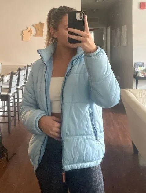This jacket is in perfect condition and fits comfortably. I bought this jacket last year and only have worn it a handful of times so I would like to get it out of the closet to a new home! No flaws, it’s honesty quite warm and really cozy. Message me for more pictures if needed. Color is a more vibrant blue than pictured, the lighting is bad