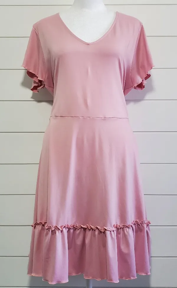 Alredine Short Sleeve, V-neck, Ruffle‎ Pink Dress. Size: L Size L - $25 - From Anna