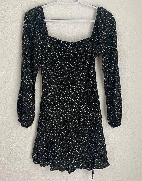 Altar’d State black dark floral long sleeve ruffle faux wrap mini dress size S - $12 - From Priscila