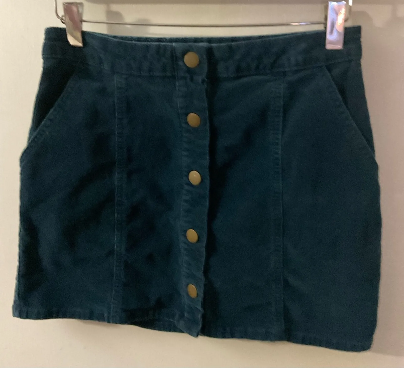 Style: Button up Mini skirt #89203 Color: Teal( (Blue green) Size: S Waist: 14” Length: 14” Conditio... Show more
