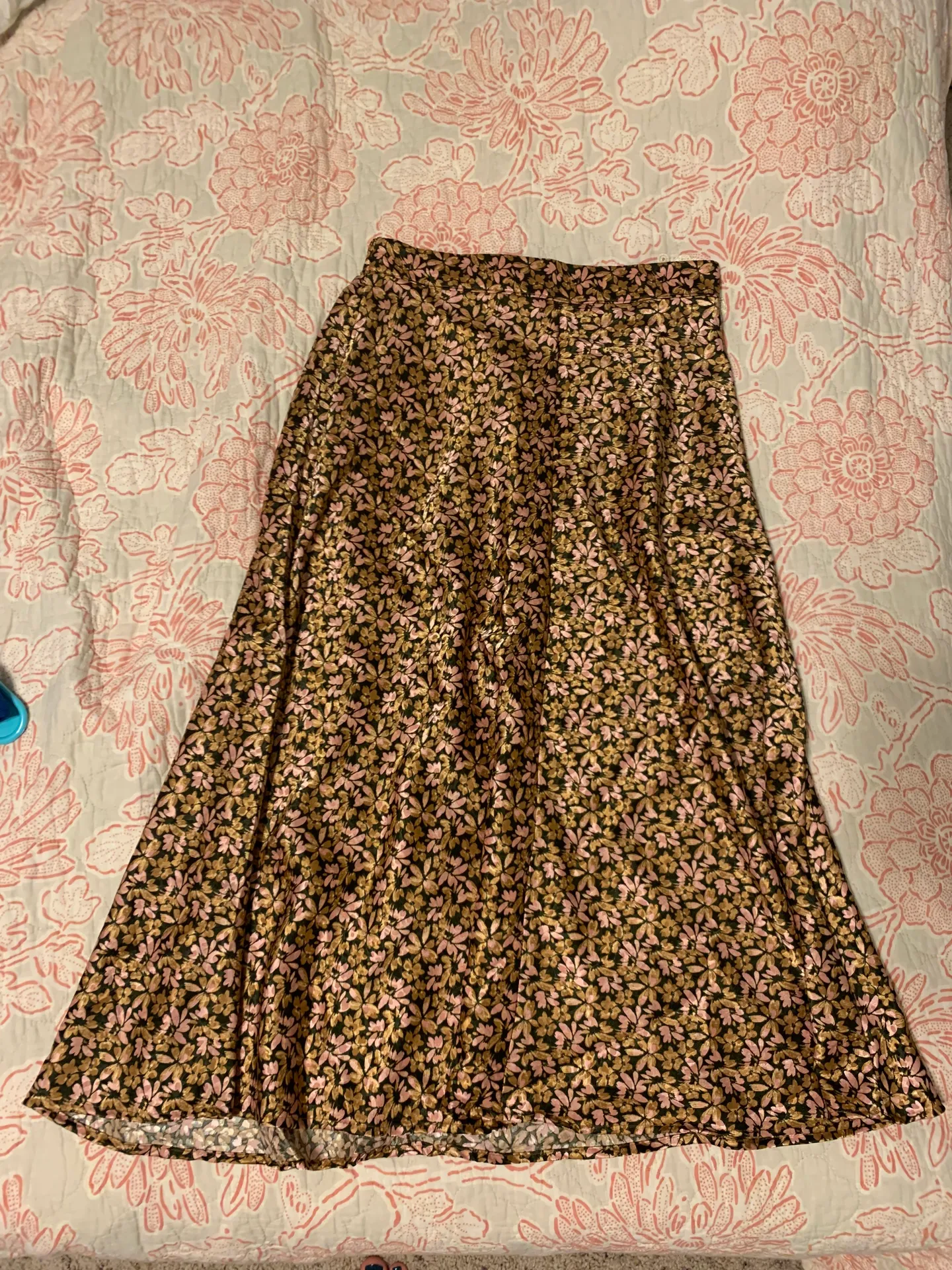 - New with tags! - Fits more like a medium - I’m 5’5” and this skirt falls a few inches above my ank... Show more