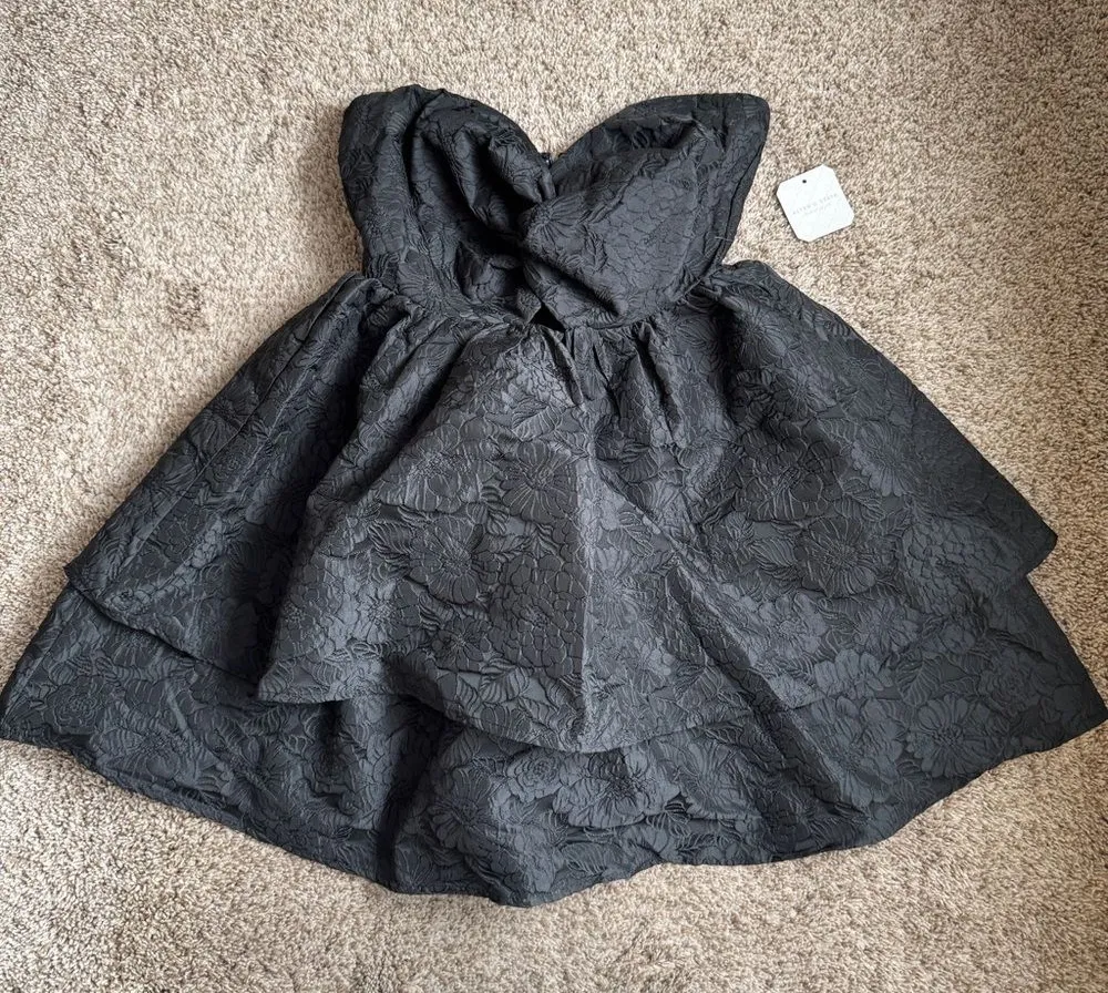 Strapless Sweetheart neckline with a pretty structured skirt and waist cinching bodice. Cute keyhole... Show more