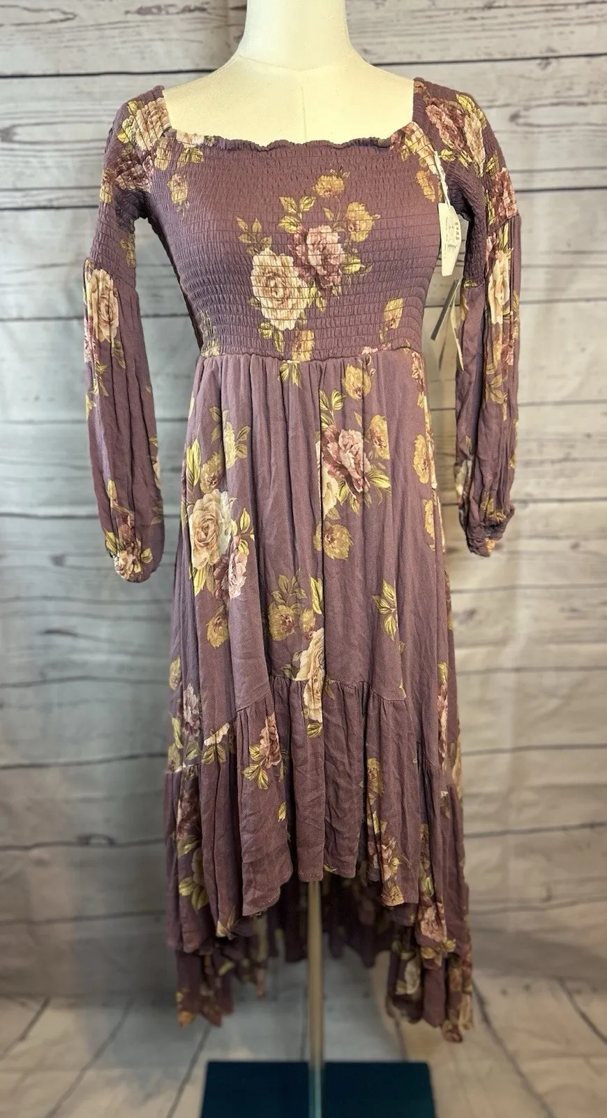 Beautiful purple floral Altar’d State high-low cascade dress in size medium. New with tags. Features... Show more