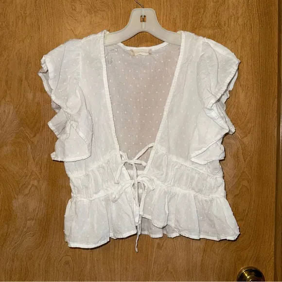 Altar’d State Sheer Cotton Top. Size Large. Pre-Owned. Like new. Deep V-Neck. Cute front tie and bot... Show more