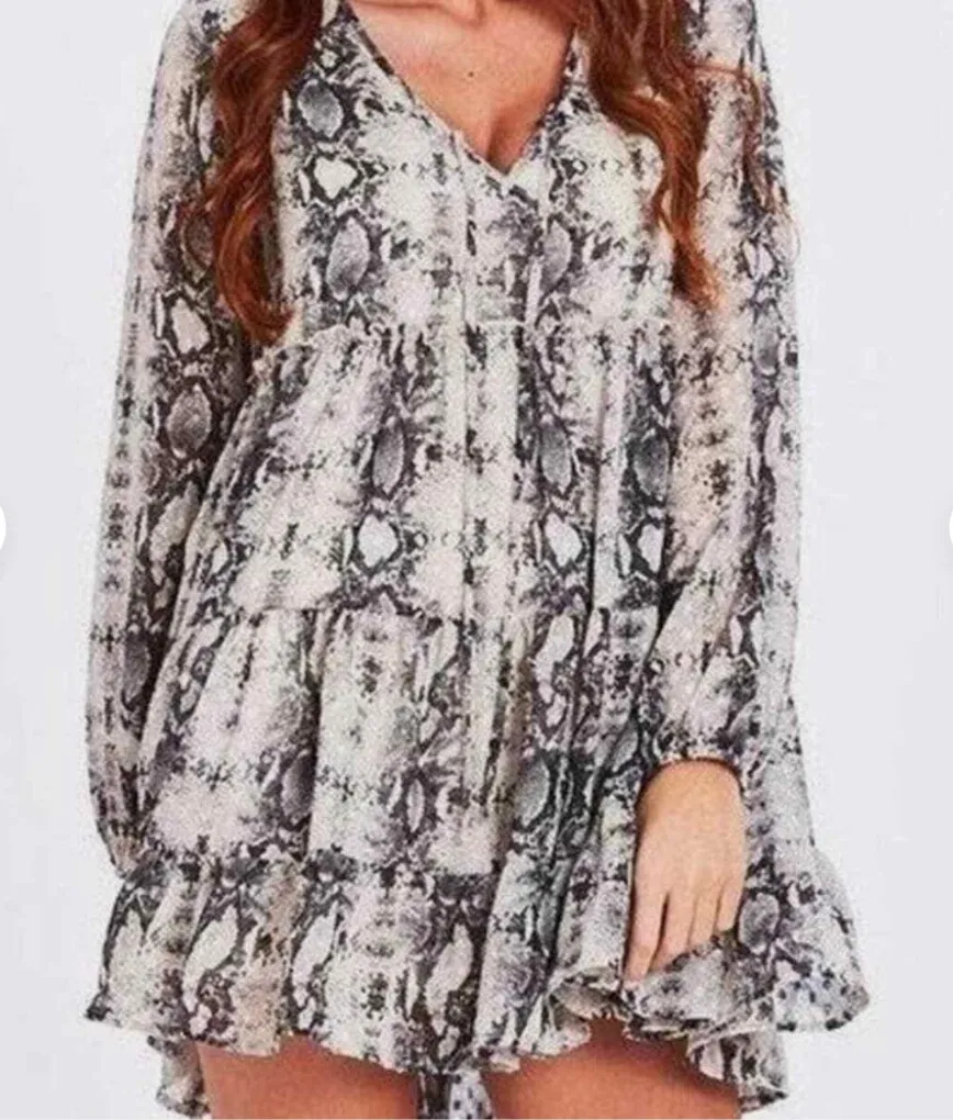 From Altar’d State comes this tiered Snakeprint Swing Dress Tunic length in black combo size xs. Fea... Show more