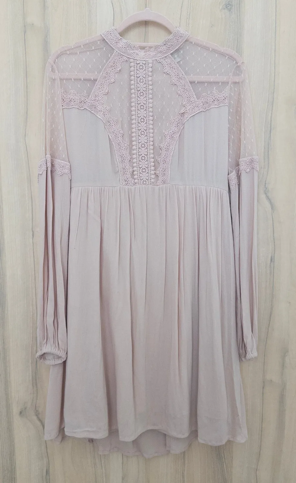 Features: Long sleeve dress with lace bodice and embroidered detailing Sheer lace upper and sleeves;... Show more