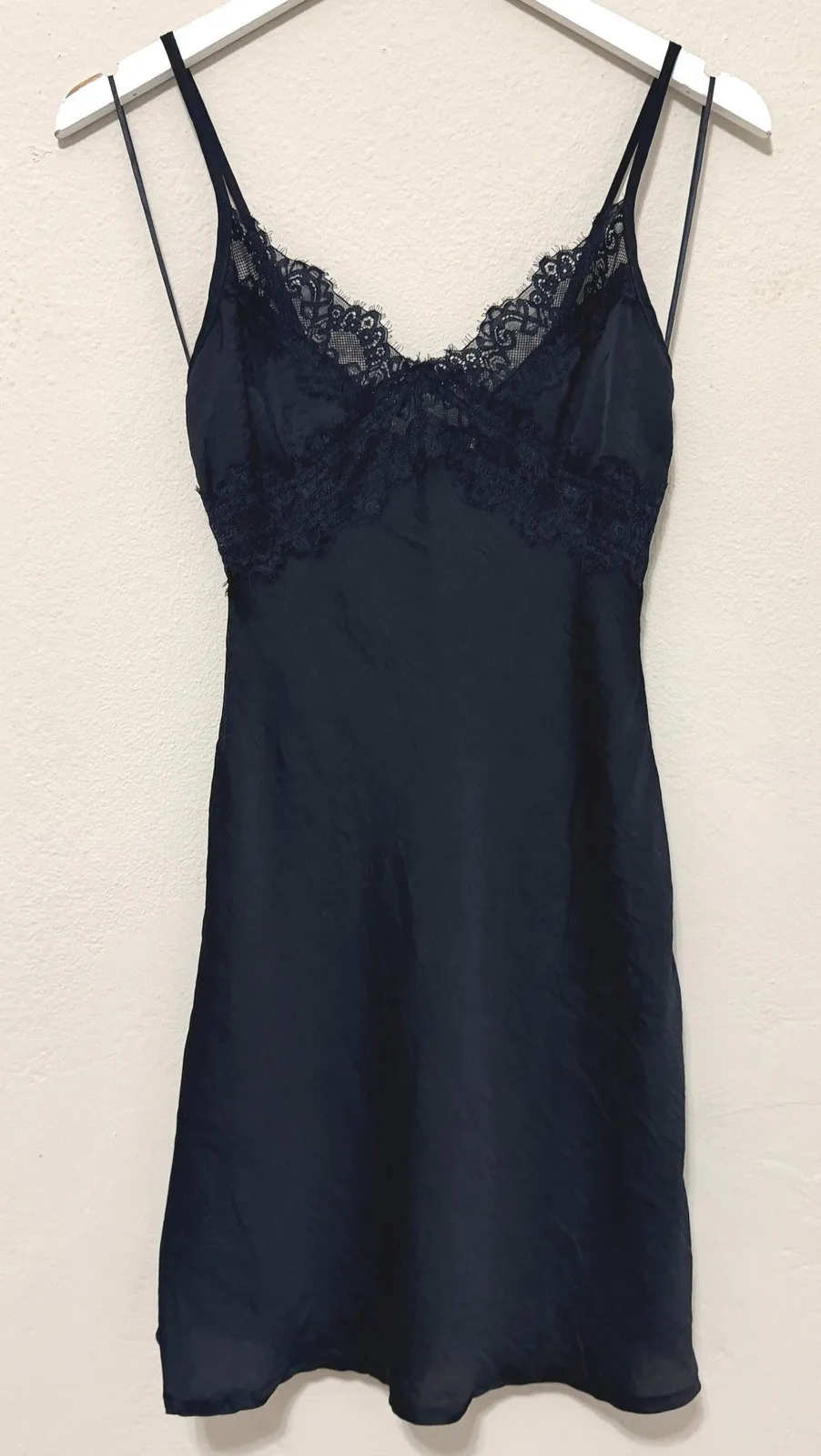 Altar'd State Black Satin Lace Mini Dress Slip Lace Trim Size: XS Approximate measurements laying f... Show more