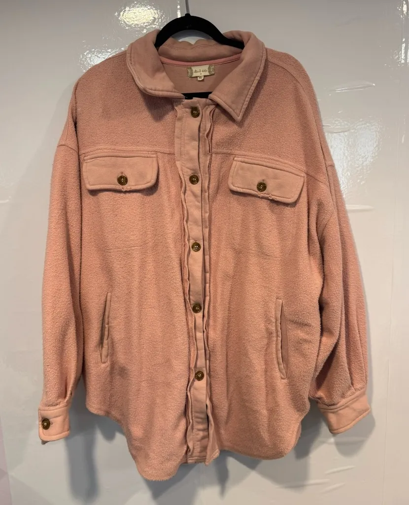 Soft blush pink fleece jacket. Button-up style with chest pockets. Size medium heavyweight jacket