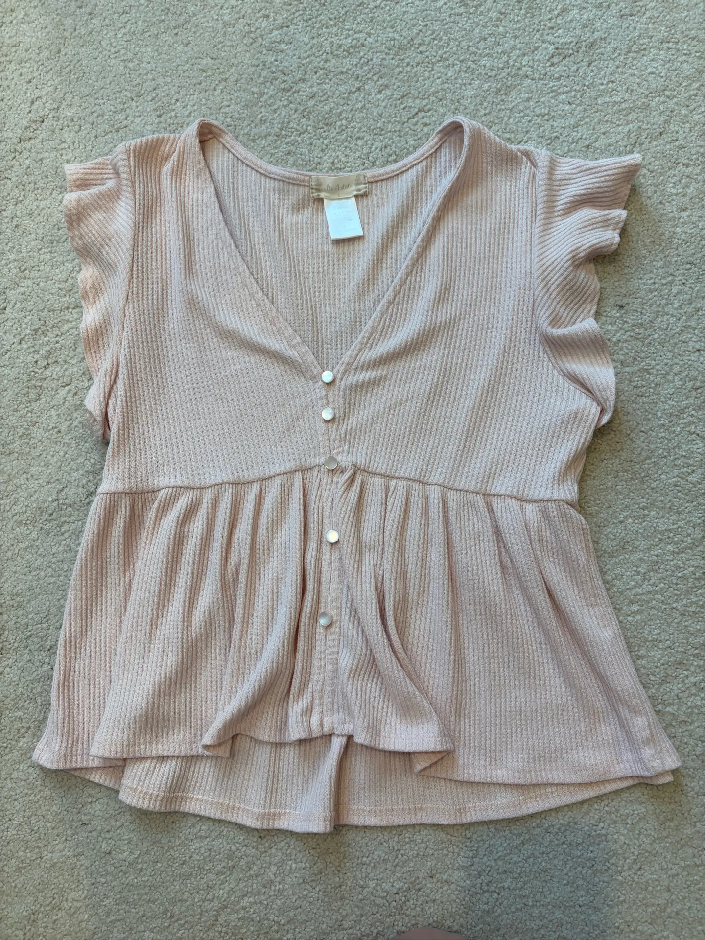 Stretchy fabric! Babydoll fit! Perfect for school but just don’t need anymore!