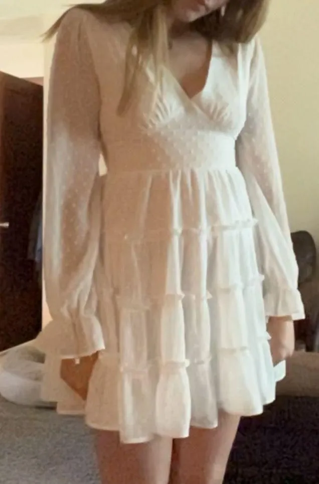 long sleeve white dress, size medium, provides space and support to larger bust sizes (D/DD), no fla... Show more