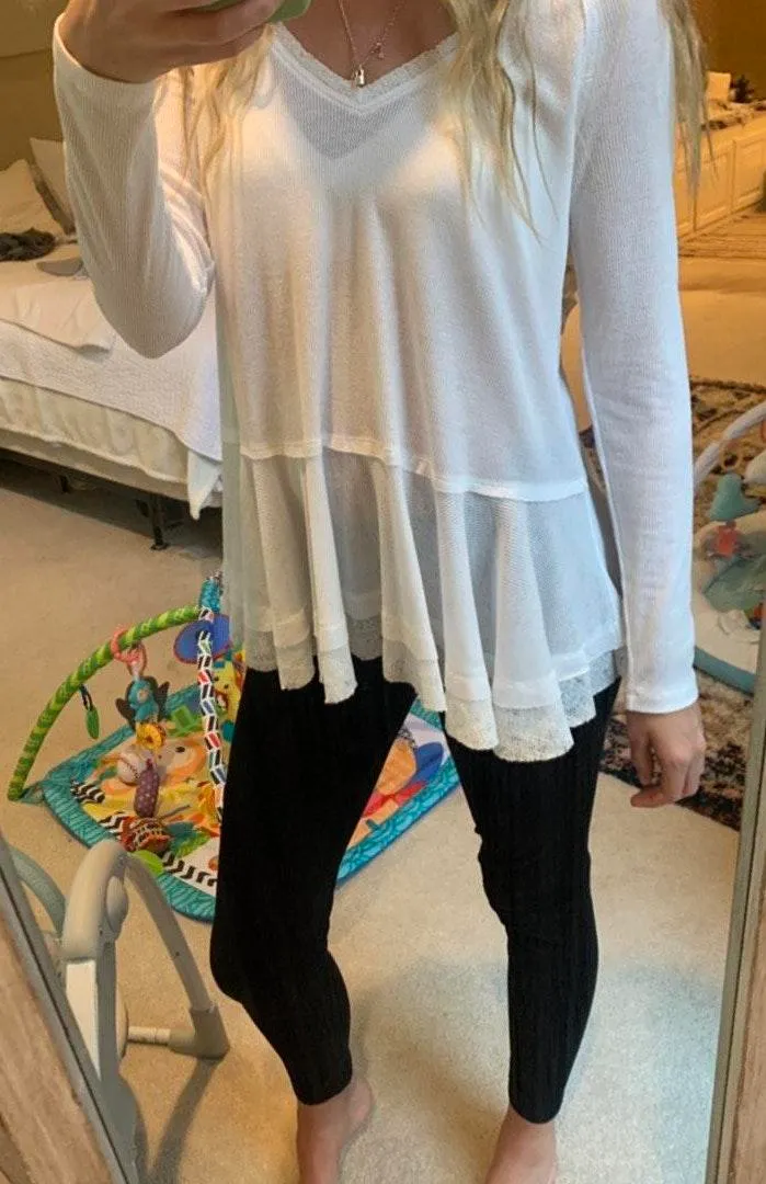 Super cute white long sleeve Lightweight Soft, frayed end design Like new