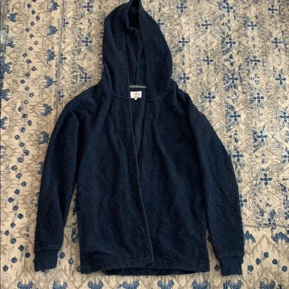 Brand: Alternative Apparel Color: Navy Blue Size: Women’s Small Fabric: 65% cotton, 35% polyester Cozy hooded jacket with textured fabric. AND IT HAS POCKETS! From a smoke-free household.