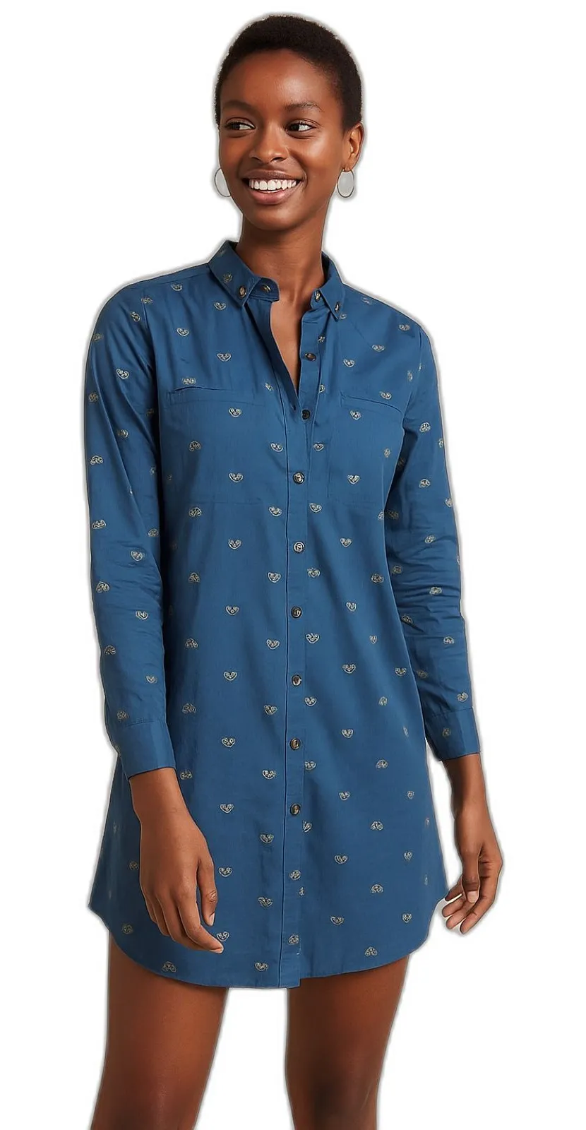 LONG SLEEVE BUTTON FRONT shirt dress SMALL novelty bike print blue - $20 - From Rachelle L