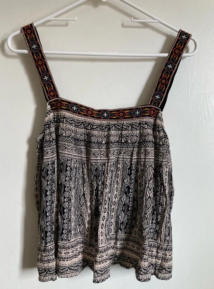 Alya Cream Colored Southwest Embroidered Cropped Sleeveless Tank Blouse Great Condition Square Neck... Show more