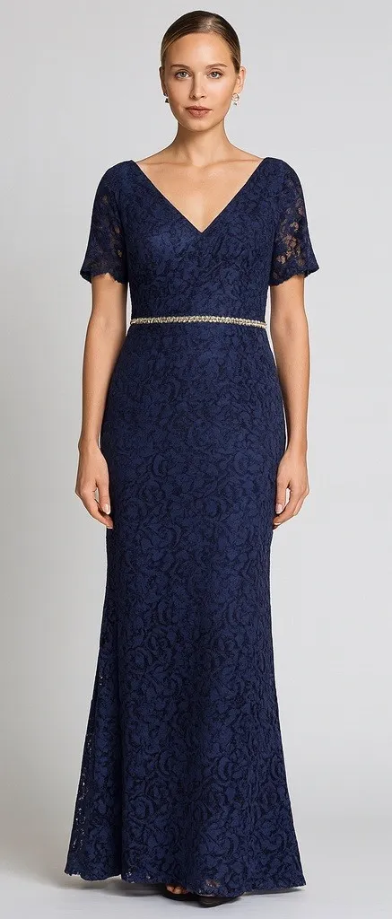 ALYCE Paris Navy Blue Lace Embellished Waist Maxi Evening Cocktail‎ Dress 14 - $180 - From Pamela