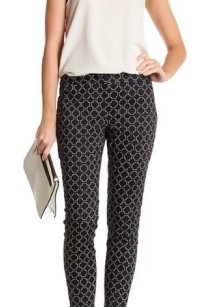 ~ Graphic print ~ slim fit ~ ankle length ~ Midrise ~ pockets ~ stretch ~ zipper with hook and eye ~ excellent used condition Size:,4 Inseam: 24 1/4” Rise: 8.5” Waist: 15.5” layflat Work office job interview business casual lunch brunch trendy date dinner