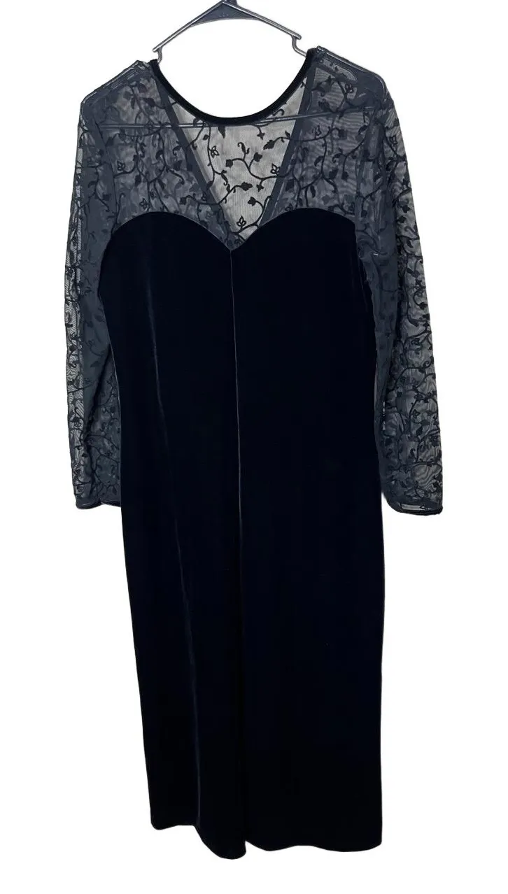 AMANDA SMITH Black Velvet Sheer lace top Long sleeves Vintage Maxi Evening Dress 10 This vintage Am... Show more