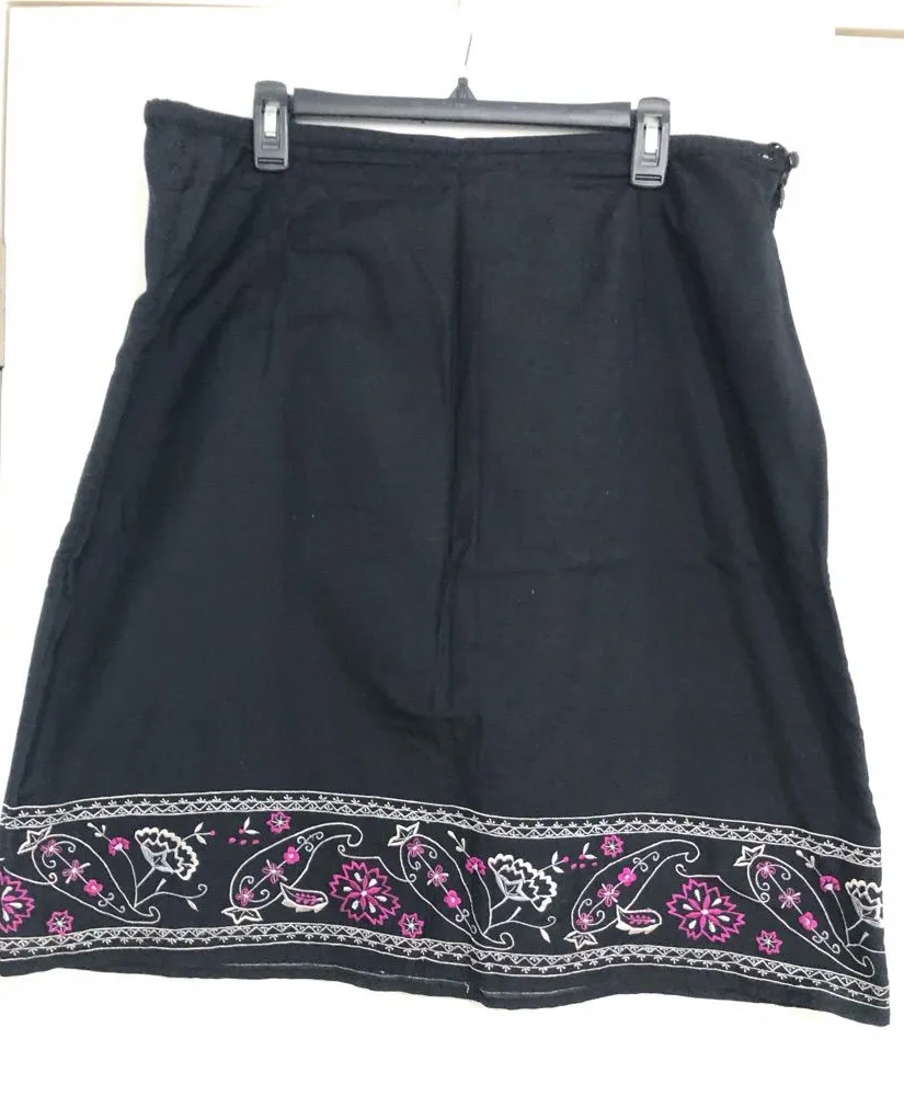 Vintage 90s y2k Amanda smith floral embroidered black pink skirt waist 38”. Preowned in good condition some very light pilling has no size tag so please use measurements for fit Waist 19” across Length 24” Side zip with one button closure lined