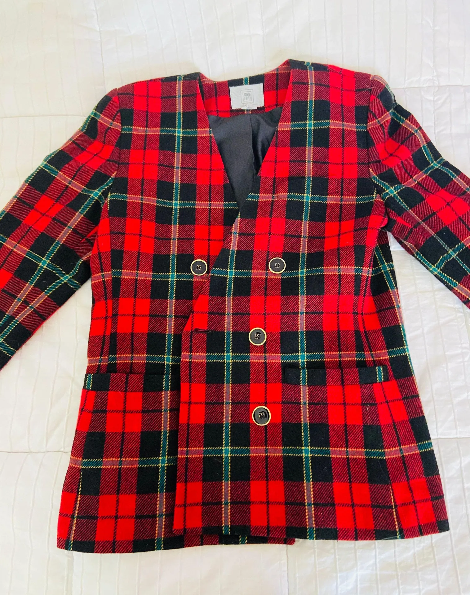 Amanda smith vintage blazer Fits really nice! More fitted rather than oversized No flaws or anything wrong just switched styles Super cute with black jeans or leggings! Not itchy:))