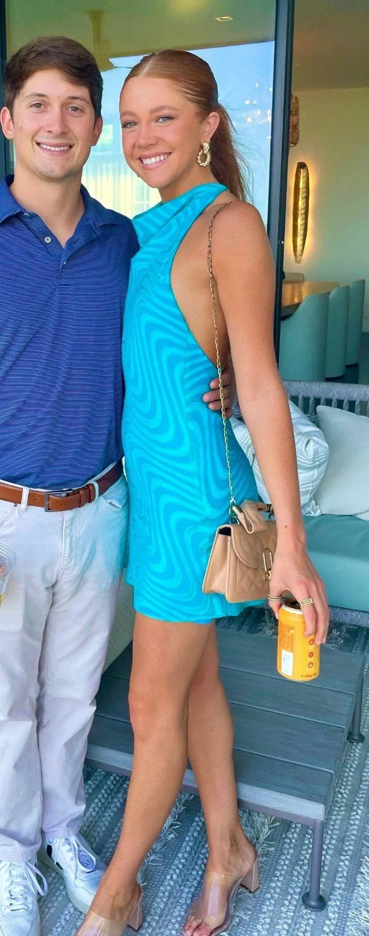 Beautiful Amanda Uprichard dress, teal and blue patterned with chain open back, worn once! Perfect c... Show more