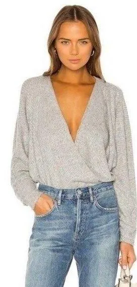 Brand new with tag Dolman long sleeve Deep V-neck Faux wrap front with snap button closure Ribbed S... Show more