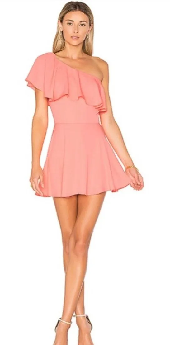 Amanda Uprichard x REVOLVE Sedona one shoulder mini dress Color: Neon Ballet Corset boning in bodice... Show more