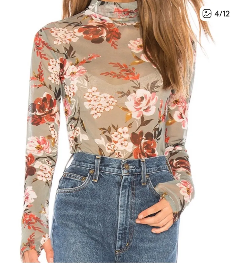 Amanda Uprichard REVOLVE Watson Top in Floral Lowery Mesh Long Sleeve Blouse Size M. In excellent co... Show more