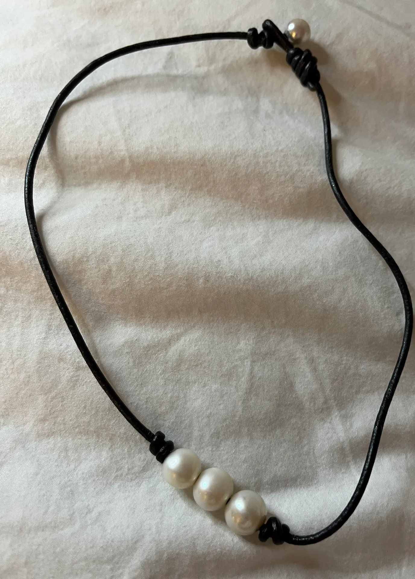 -worn 1x but in good condition -pearl size is not too big/medium sized -choker necklace/not too ti... Show more