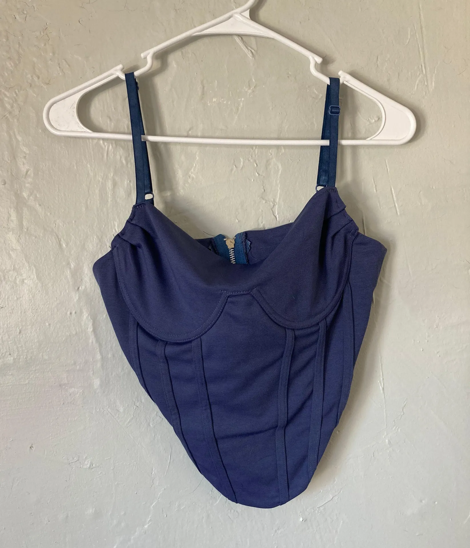 Dark blue corset top! Never been worn. Underwire is poking through on one side but it could either b... Show more
