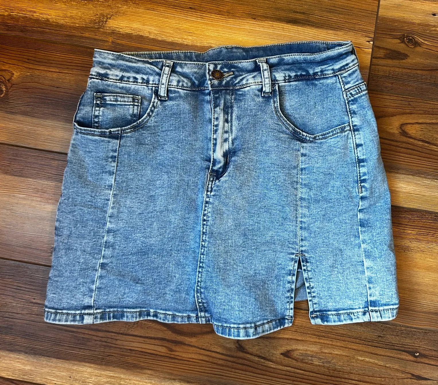 Super comfortable Jean shorts underneath, not viable or see through at all. Great pockets
