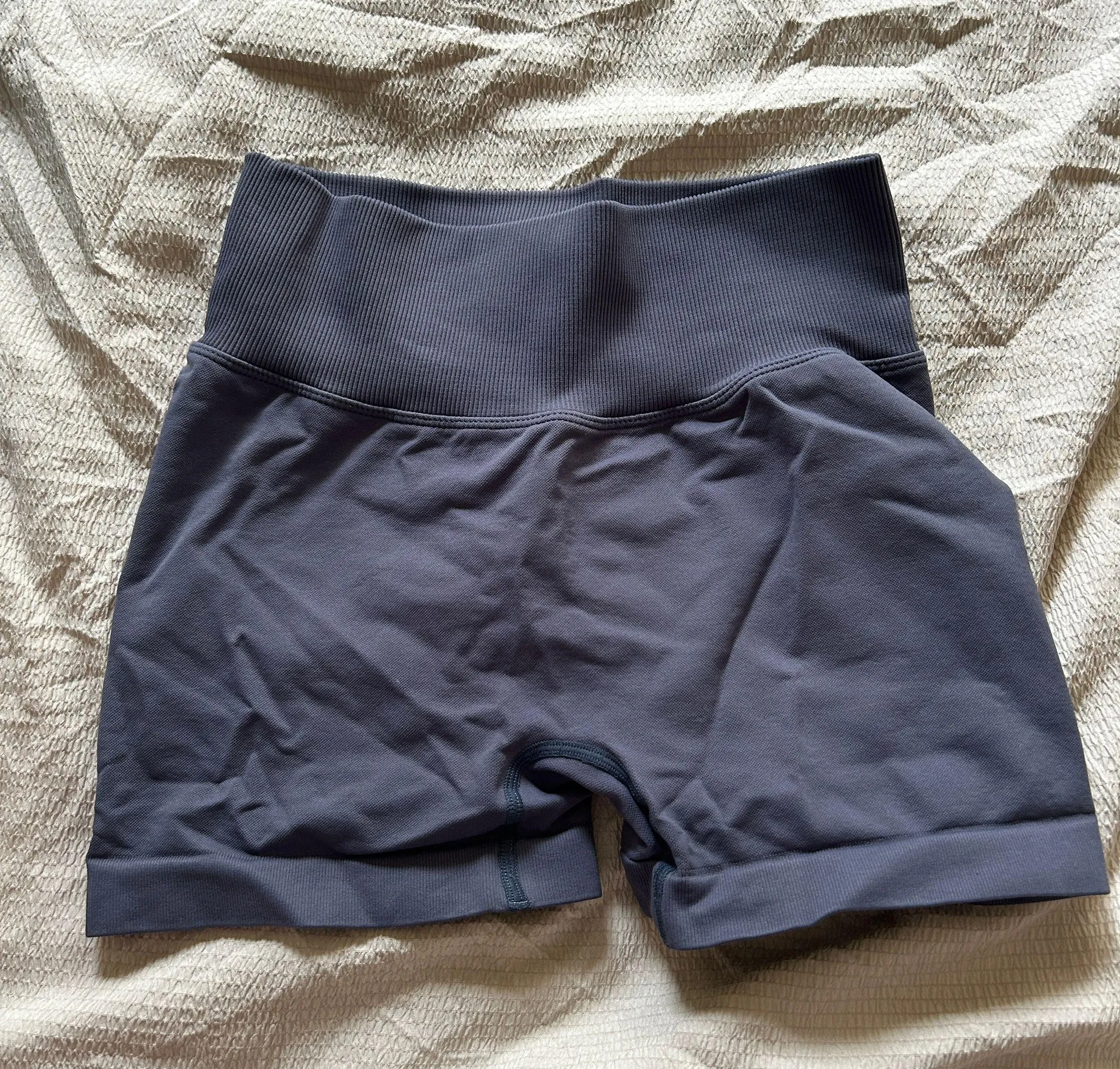 Amazon MOOSLOVER blue shorts with a scrunch seam, super flattering and snug! I wear a size XS/S and... Show more