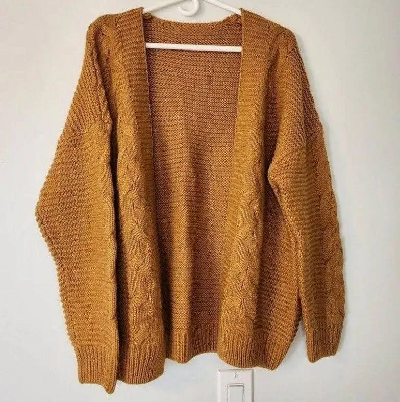Never worn, just didn’t fit me right but so so cute. Sweater-like material. No flaws. Would fit a sm... Show more