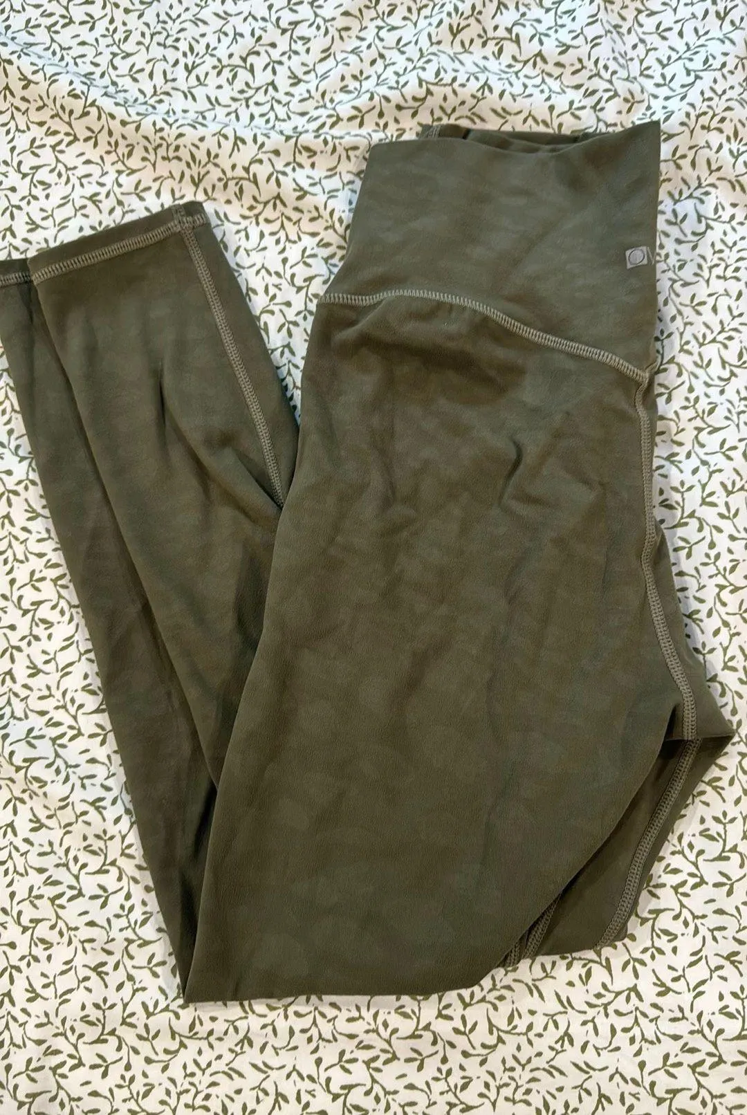 Olive green with tonal leopard print. 7/8 ankle fit. Feels like align fabric. High waisted. Purchase... Show more